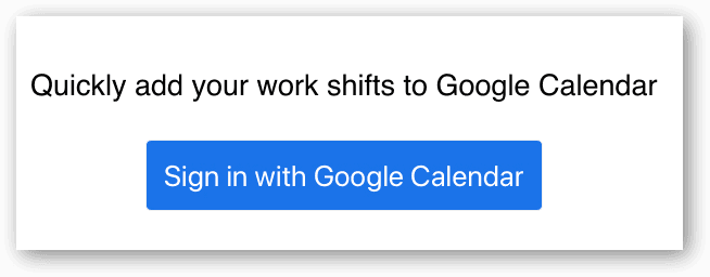 This project was inspired when my sister was working part-time at a supermarket and at a hospital. She would get her schedule every other week and she mentioned how annoying it was to add her shifts to Google Calendar because her schedule would be different every week.